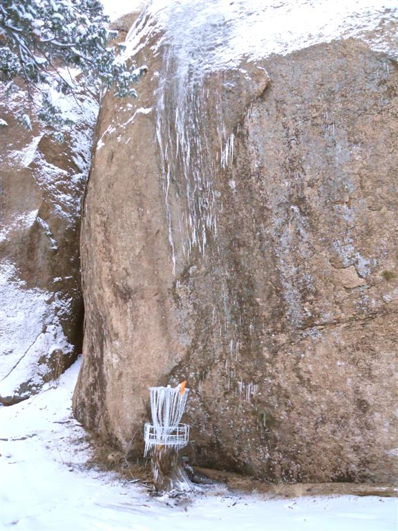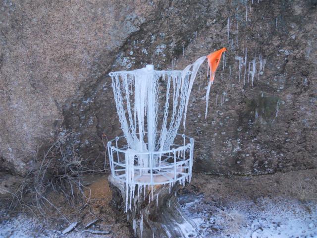 It's tough to get the disc in the basket with frozen chains and icycles in the way.